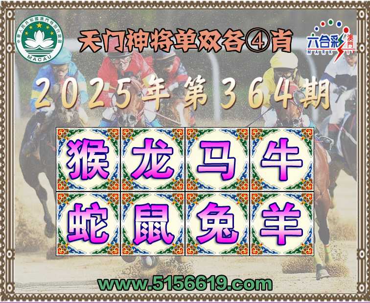 364期:〖天门神将〗 🍗单双各④肖🍗开:马12