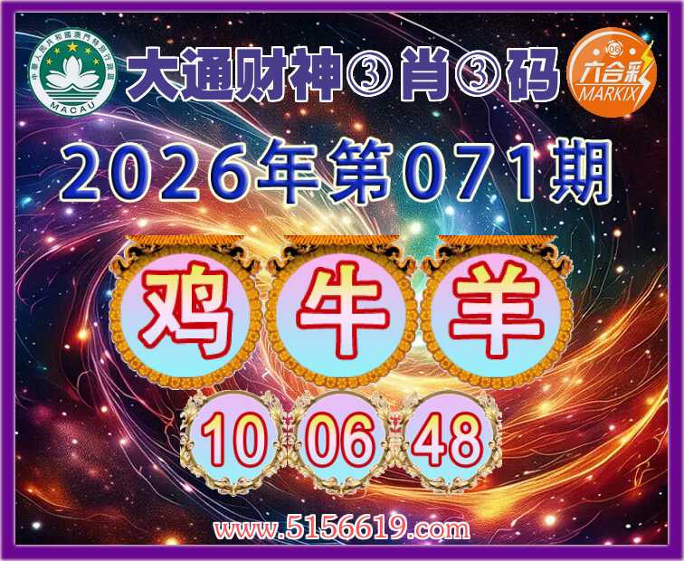 071期:【大通财神】 👘③肖③码👘【鸡牛】【10.06.48】开:羊48准上榜高手
